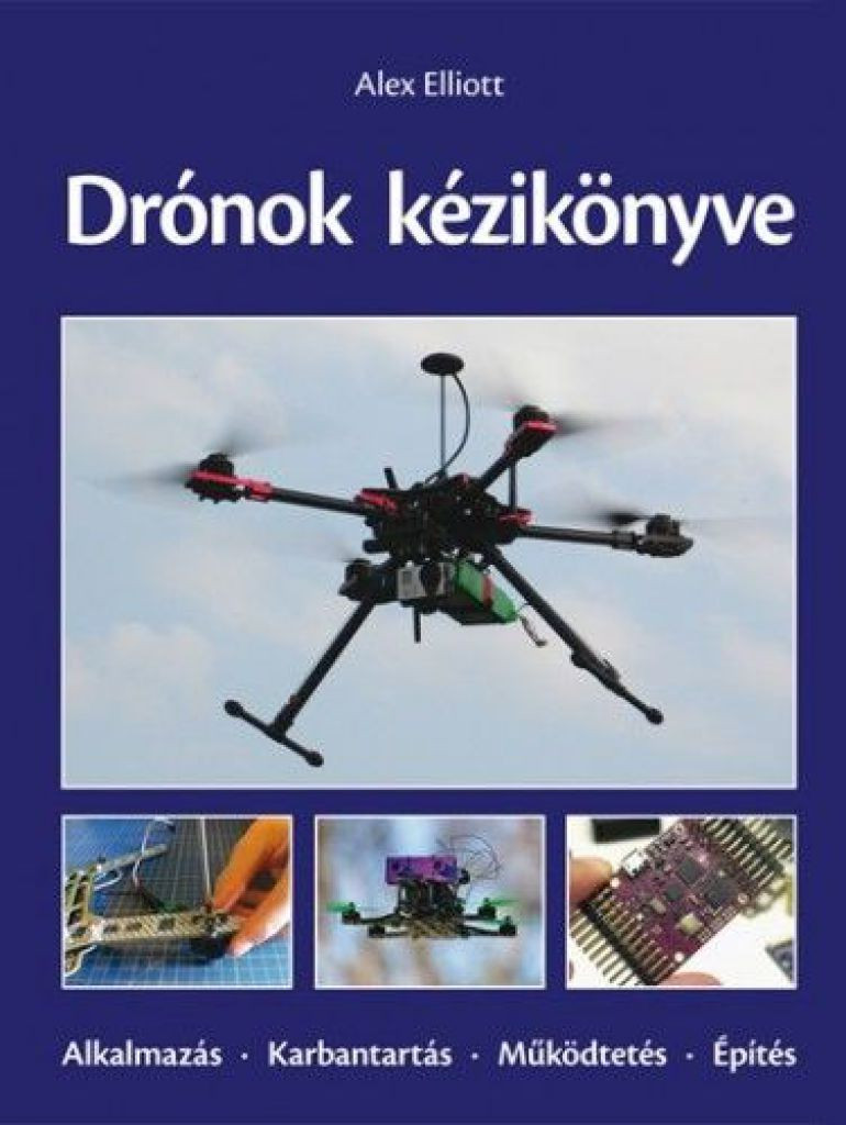 A Drónok kézikönyve mindazoknak alapmű, akik drónt vásárolnak, üzemeltetnek vagy építenek. A gazdagon illusztrált könyv röviden ismerteti a pilóta nélküli repülőgépek történetét, áttekinti a ma kapható drónok széles választékát és azok felhasználási területeit. A tartalomból: A drónok rövid története A drón kifejezés értelmezése A drónok története A drónok típusai Saját készítésű és vásárolt drónok Merevszárnyú repülőgépek Ikervezérsíkú modellek Forgószárnyú modellek A drónok alkalmazási területei Térképezés és légi szemlézés Légi fotózás Drónos megfigyelés Drónos csomagszállítás Hobbielfoglaltság A drónok szerkezeti felépítése Vázszerkezet Repülésvezérlő Rádióvezérlés Motorok Az elektronikus sebességszabályzók Rotorlapátok és légcsavarok Akkumulátorok A kamerák és a stabilizáló-rögzítő rendszereik (gimbalok) A drón személyes nézetű videóirányítása (FPV) A drón alkatrészeinek összeválogatása A drónépítés gyakorlata A légi fotózásra alkalmas drón megépítése Mini FPV négyrotoros multikopter Merevszárnyú drón Repülés és repülésbiztonság Biztonsági információk Magyarországi jogi szabályozás A repülés elsajátítása Repülés előtti ellenőrzések Motorteljesítmény-adatok A tolóerő-táblázat kezelése A tolóerő-táblázat készítése