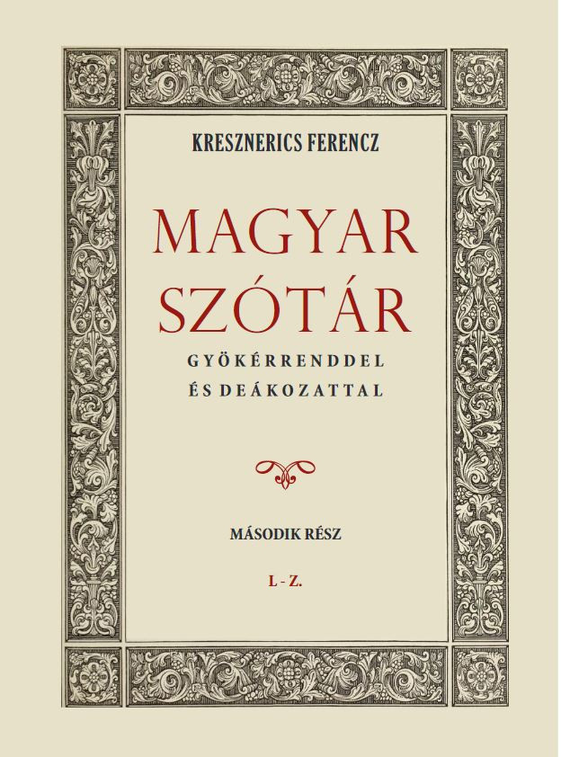 Kresznerics Ferencz (1766-1832) esperes-plébános, akadémikus. Két évtizedes gyűjtést követően 1808-ban hozzáfogott gyökérrendű szótára anyagának összeállításához. Szótárában 80.000 szó szerepel. Műve bevezetőjében kifejti véleményét a magyar nyelv alaktani rendszeréről. Szótárában a „gyökerek” azaz szótövek alapján csoportosítja a kifejezéseket. A kiemelt szótő után csokorba gyűjti a képzéssel és az összetétellel létrehozott szavakat. Bemutatja a tájnyelvi és a nyelvtörténeti alakváltozatokat, továbbá a kifejezésekhez tartozó szólásokat, közmondásokat. Könyve nagyban hozzájárul a magyar nyomtatott örökség kutatásához és a nemzeti nyelv megismeréséhez. A könyv az eredeti kiadás reprint változata.