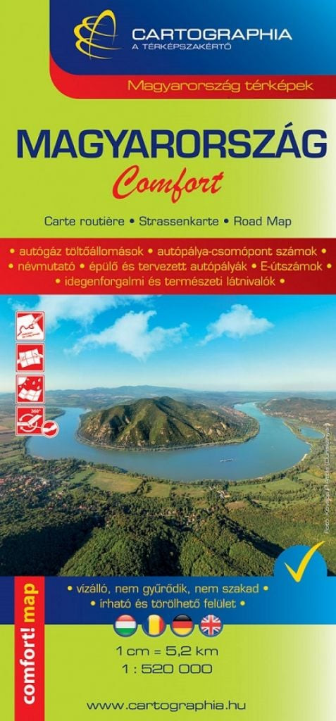 A Cartographia kiadó népszerű Comfort térképsorozatának tagja 1:520000 méretarányban ábrázolja Magyarországot. Az új kiadású térképen -az általános közút korrektúra mellett a gyorsforgalmi utak hálózata is aktualizálásra került.
