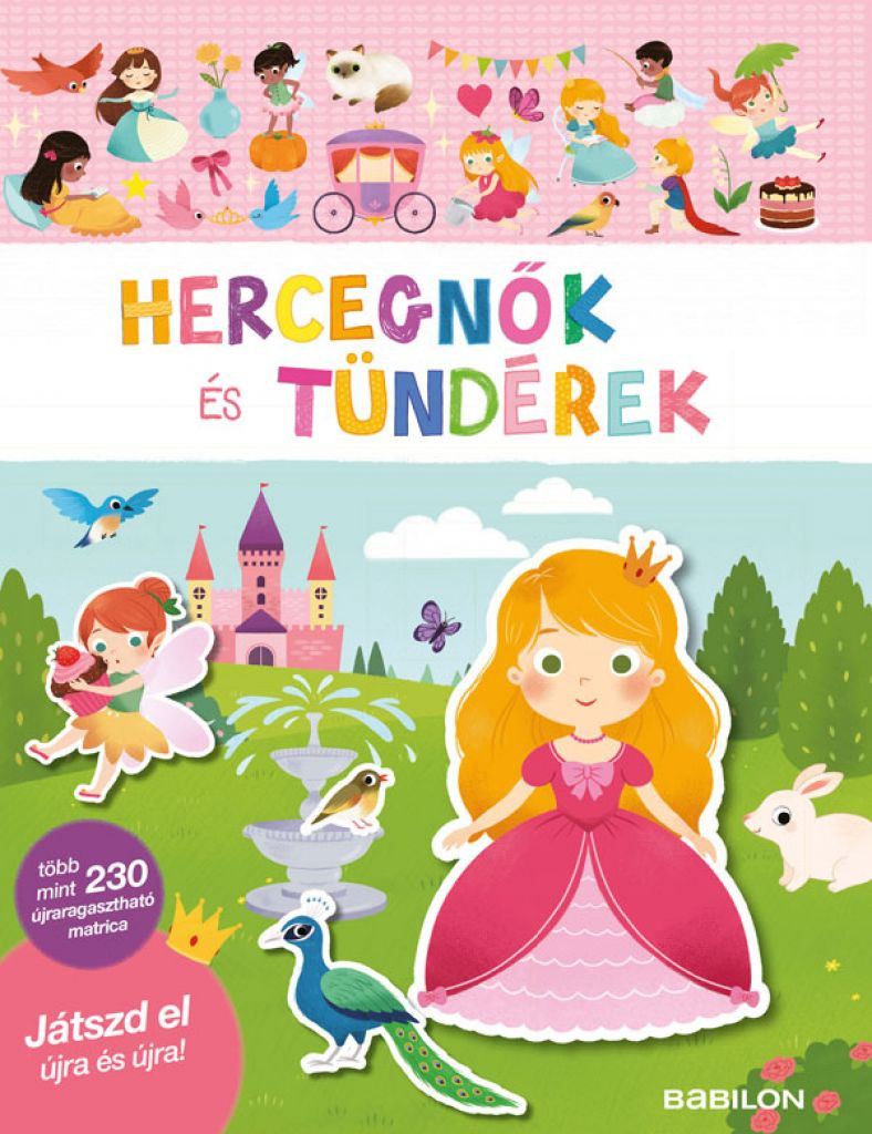 Rendezd be a hercegnők és tündérek világát, alkoss kedvedre történeteket! Ebben a füzetben mindent megtalálsz egy igazán varázslatos játékhoz: több mint 230 újra és újra felhasználható matricát, és egy füzetet változatos helyszínekkel. Kik táncolnak a bálon? Hogyan lazítanak szobájukban a kis hercegnők? Mi történik a felhők birodalmában?
