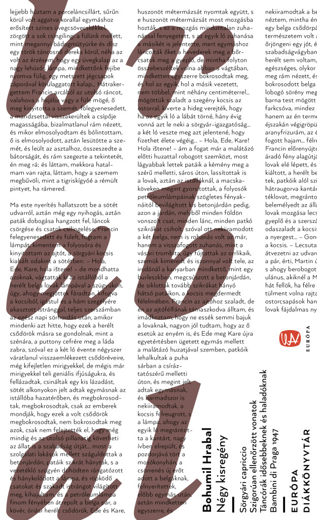 Hrabal a maga zseniális költőiségével úgy vezet bennünket végig e köteten, hogy sokszor azt sem tudjuk, sírjunk-e vagy nevessünk.
