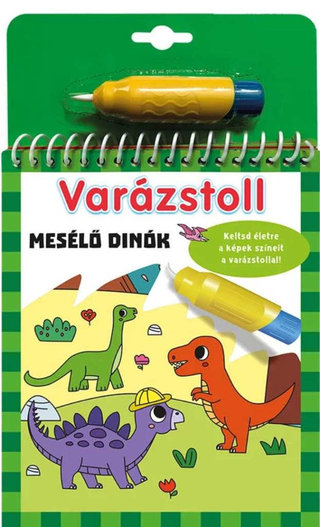 A Varázstoll - Mesélő dinók vízzel festhető színező egy varázslatos utazásra hívja a gyerekeket a dinoszauruszok lenyűgöző világába. Ez a különleges kreatív foglalkoztató könyv négy elragadó történetet és varázslatos képeket tartalmaz, amelyek a varázstoll segítségével kelnek életre.