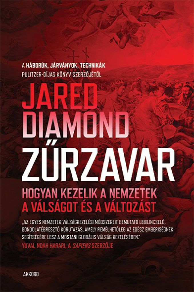 Jared Diamond korábbi könyveiben azt mutatta be, hogyan alakulnak ki, majd omlanak össze a civilizációk. Most, amikor helyi és globális válságokkal kell szembenéznie a világnak, rávilágít arra, hogy egyes országok miért tudják jobban kezelni a hatalmas zűrzavart. Lenyűgöző utazásra viszi az olvasót, és megmutatja, hat ország (Finnország, Chile, Indonézia, Japán, Németország és Ausztrália ) hogyan élt túl jelentős katasztrófákat az elmúlt kétszáz év során. Érdekes szabályszerűségeket talál abban, hogy ezek az egymástól nagyon különböző, modern országok – amelyek mindegyikében élt már – hogyan épültek fel a traumákból. Előre tekintve fontolóra veszi, melyek lesznek a legnagyobb fenyegetések a jövőben, és megvizsgálja, milyen kockázata van annak, ha a világ elherdálja természetadta erőforrásait, és elindul a katasztrófa felé vezető szomorú úton. Elkerülhetetlenül ez a sorsunk? Vagy tanulhatunk a múltban történtekből? A szerző összes könyvére jellemző történelmi, földrajzi, biológiai és antropológiai szempontok mellett a Zűrzavar megmutatja azokat a tényezőket, amelyek meghatározzák, hogy egy ország vagy egy személy hogyan reagálhat az emberfelettinek tűnő kihívásokra – a könyv így lesz egyszerre nagy léptékű és személyes. „Válságokról szóló könyvemet az Egyesült Államokban 2019 májusában adták ki, ezt a magyar fordítást pedig 2020 végén. Vagyis az időzítés páratlanul rossz volt. Vagy páratlanul jó? Rossznak azért gondolom, mert sem én, sem más nem látta előre a világválságot, amelyet a Covid okozott. Az időzítést ugyanakkor szerencsésnek is tarthatom, mert így mindenki megbizonyosodhat arról, hogy a krízisek elemzésére bevezetett rendszerem alkalmazható olyan válságra is, amely még meg sem jelent, amikor írtam a könyvet.” Részlet a szerzőnek a magyar kiadáshoz írt előszavából „Az egyes nemzetek válságkezelési módszereit bemutató lebilincselő, gondolatébresztő körutazás, amely remélhetőleg az egész emberiségnek segítségére lesz a mostani globális válság kezelésében.” YUVAL NOAH HARARI, A SAPIENS SZERZŐJE
